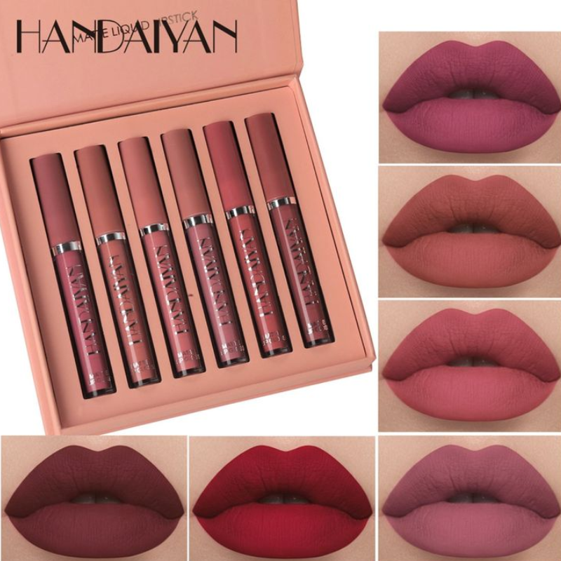 / HANDAIYAN 6 Colors Long Lasting Velvet Lips Tint Liquid Lipsticks Waterproof Non-Stick Cup Lipgloss Gift Set