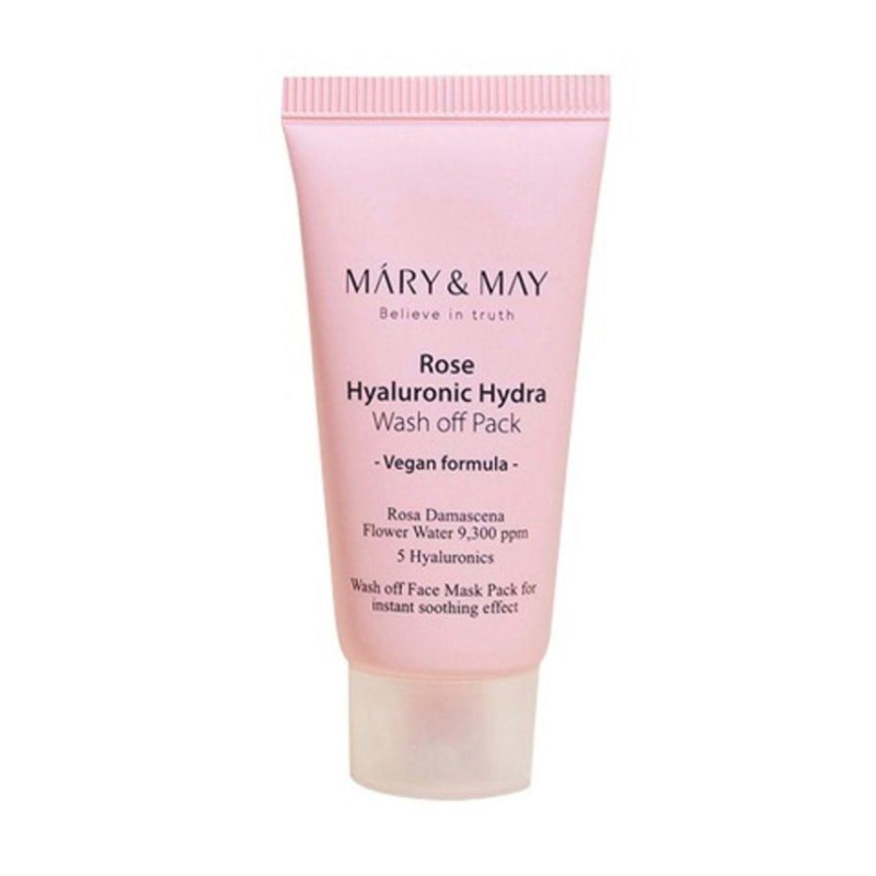 Mary & May Rose Hyaluronic Hydra Wash off Pack is formulated with 5 types of hyaluronic acid and 9,300 ppm Damask rose water.